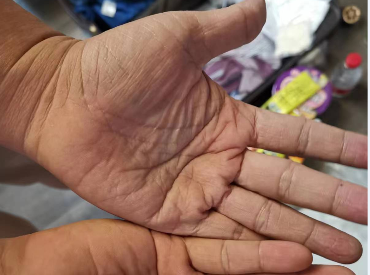 被汗水浸泡的手掌
