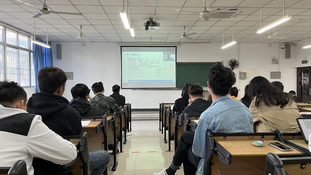 会议开始前,曹春杰院长代表学院向周教授表示热烈欢迎,并简要介绍了学院的发展情况。随后周教授从数据安全重要性、现状及生命周期的角度,引入可搜索加密及图像的搜索关键技术。阐述了可搜索加密与面向加密图像搜索的研究进展,表示数据加密潜力巨大。并从性能、可用性及安全性的权衡角度,阐述可搜索加密的内在发展规律,对未来面临的挑战提出思考建议。
