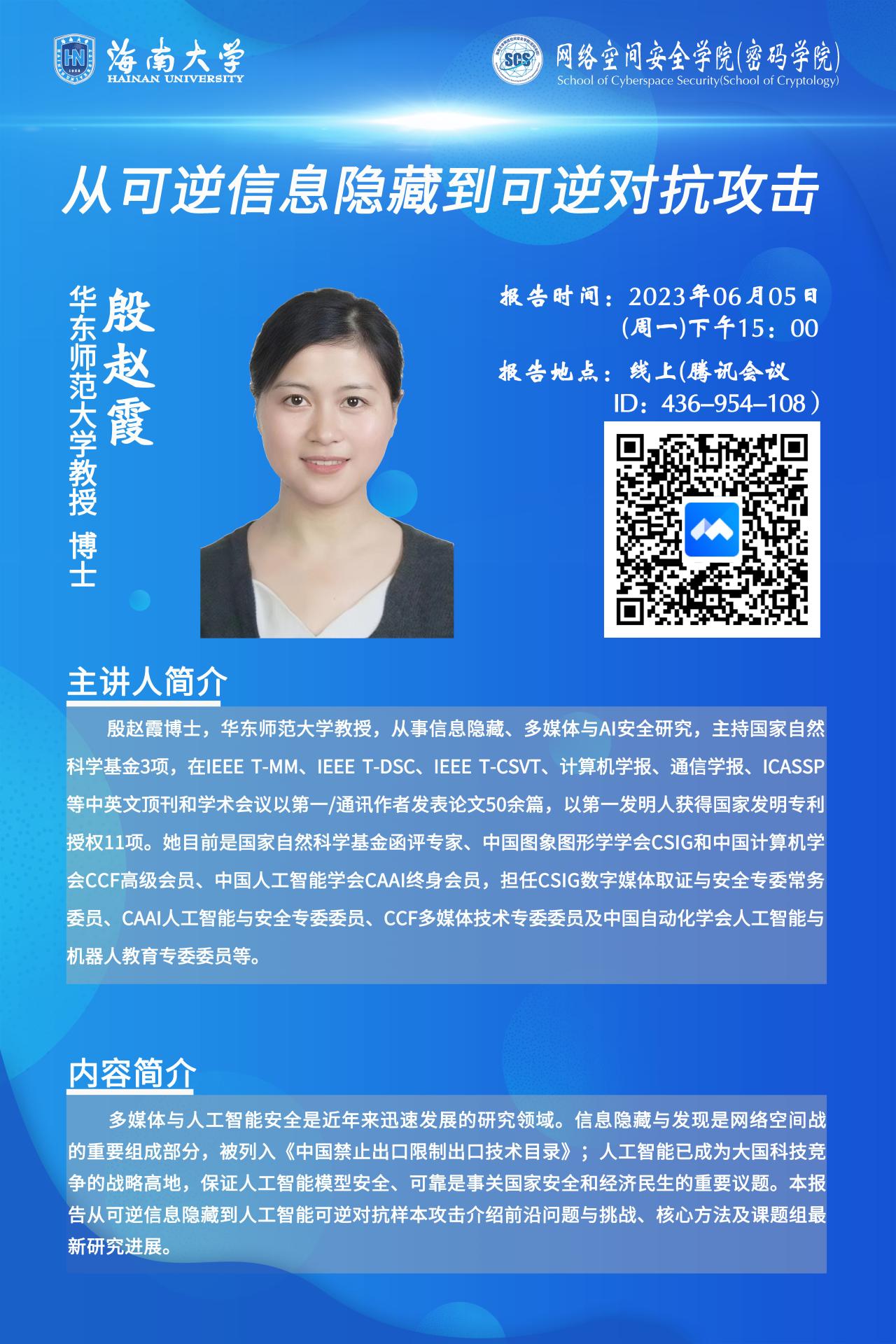 【讲座】从可逆信息隐藏到可逆对抗攻击:殷赵霞