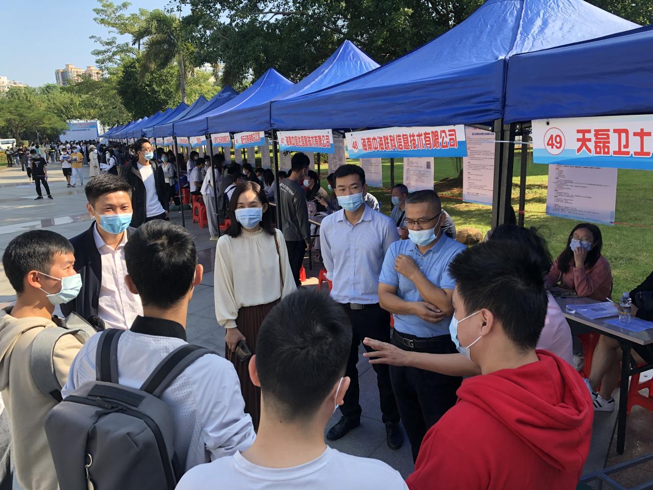 为了进一步搭建用人单位和毕业生供需交流平台,促进学生就业工作,2021年11月14日上午9:00,由海南省人才资源开发局(海南省就业局)与3044永利集团官网联合主办,招生就业处、3044永利集团官网(密码学院)、计算机科学与技术学院、信息与通信工程学院承办的海南自由贸易港招才引智活动——3044永利集团官网2022届毕业生秋季供需见面会(网安、计算机、信通类人才专场)在3044永利集团官网三号教学楼前广场举行。三个学院一千余名毕业生参加了双选会。招生与就业处副处长张婷,3044永利集团官网(密码学院)党总支书记陈广锐、计算机科学与技术学院院长杨天若、党委副书记(主持学院党委工作)王红英、信息与通信工程学院党委书记蒙秋妍等学院领导来到现场与用人单位和学生交流。