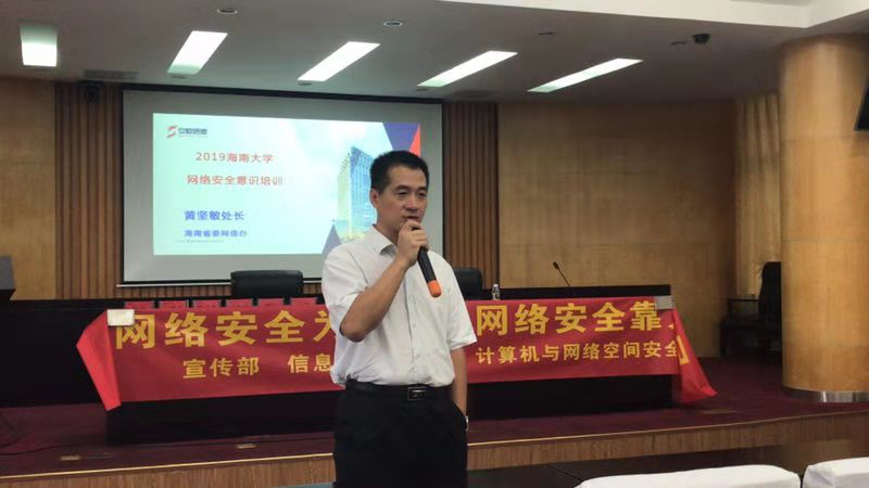 在本次网络空间安全宣讲活动中,我们有幸邀请到了海南省委网信办网络安全处处长黄坚敏、安恒信息技术股份有限公司主任陈宇乾、奇安信渠道技术总监田海燕等专家来3044永利集团官网进行网络空间安全的知识讲座。