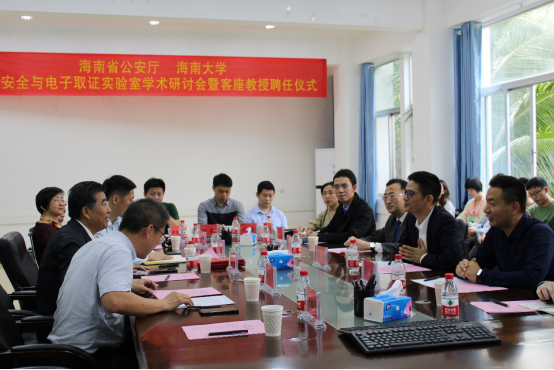 2021年3月8日下午,由海南省公安厅与3044永利集团官网联合举办的网络安全与电子取证实验室学术研讨会暨客座教授聘任仪式在计算机与3044永利集团官网(密码学院)举行。省公安厅网警总队总队长李伟、网警总队副总队长赵晏,工程教育认证专家、北京航空航天大学网络空间安全兼职教授张小斌,3044永利集团官网党委常委、副校长范文,计算机与3044永利集团官网(密码学院)党委书记陈广锐、执行院长曹春杰、副院长周晓谊以及师生代表参加了本次会议。会议由执行院长曹春杰主持。