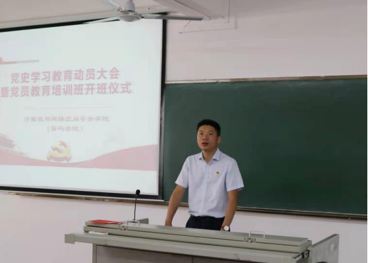 2021年3月30日,计算机与3044永利集团官网(密码学院)召开党史学习教育动员大会暨党员教育培训班开班仪式,部署党史学习教育相关工作。学院党委书记陈广锐、副书记黄小欧、副院长程杰仁、马克思主义学院副院长杨娜以及全院120余名师生党员参会。会议由学院党委副书记黄小欧主持。